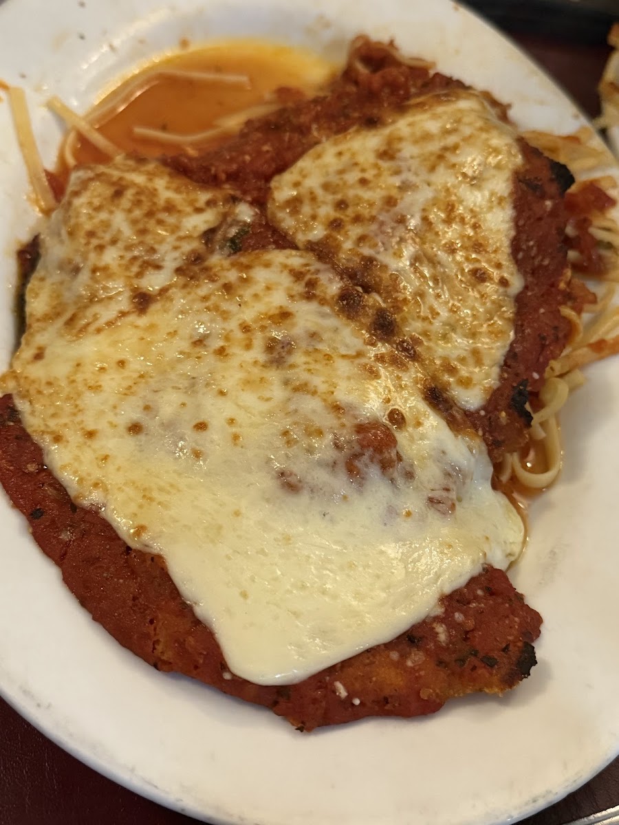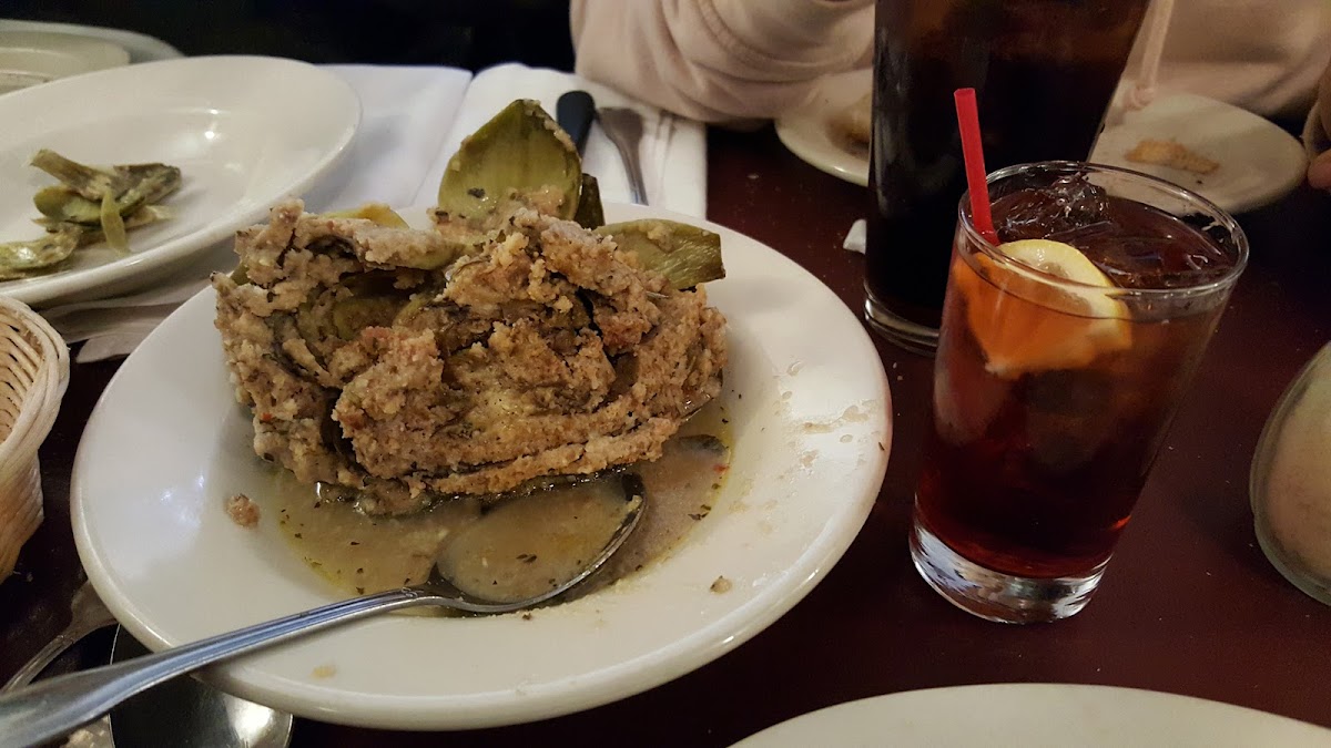 A friend had recommended this place and so we tried it. It’s definitely a no-frills kind of environment so you definitely don’t go for the service. They are very fast and efficient but it feels more of an effort to flip the table. We sat downstairs, but there’s also a large area upstairs that had seating and was a lot quieter. The dishes are HUGE and 2-3 people could split a main dish with the portion sizes. The chicken Parmesan hit the spot and I’d come back for that alone. We also tried the stuffed artichoke, but it wasn’t great.